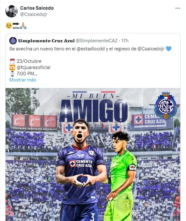 Más allá de que su salida fue algo desprolija, el pueblo cementero le guarda un gran cariño a Salcedo por cómo representó al club en la última temporada. Después de varios meses, el defensa de 31 años volverá a jugar en el Estadio Azul, aunque en esta ocasión utilizará otro uniforme. Cruz Azul y Juárez se enfrentarán por la jornada 13 del Apertura 2024 el miércoles 23 de octubre.