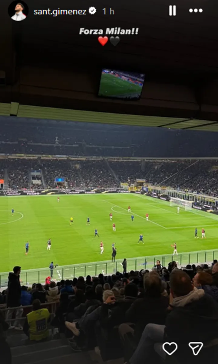 Desde la tribuna, el ex Cruz Azul acompañó al equipo y compartió una historia en Instagram con un claro mensaje: “Forza Milan!!”, junto a corazones en rojo y negro. La postal desde el Meazza reflejó su apoyo pese a quedar fuera del llamado, en un momento en el que necesita recuperar ritmo y confianza.