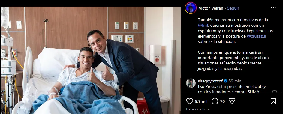 “Le transmití los mensajes de todos los socios, trabajadores y aficionados que le desean una muy buena recuperación. De parte de nuestra institución, recibirá todo el apoyo para que así sea”.