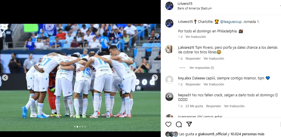 De esta manera, Nacho Rivero realizó una publicación a través de su cuenta de Instagram, con el objetivo de motivar a Cruz Azul en la previa de la gran cita. “Por todo el domingo en Philadelphia”, escribió el capitán cementero y una serie de postales del debut celeste.
