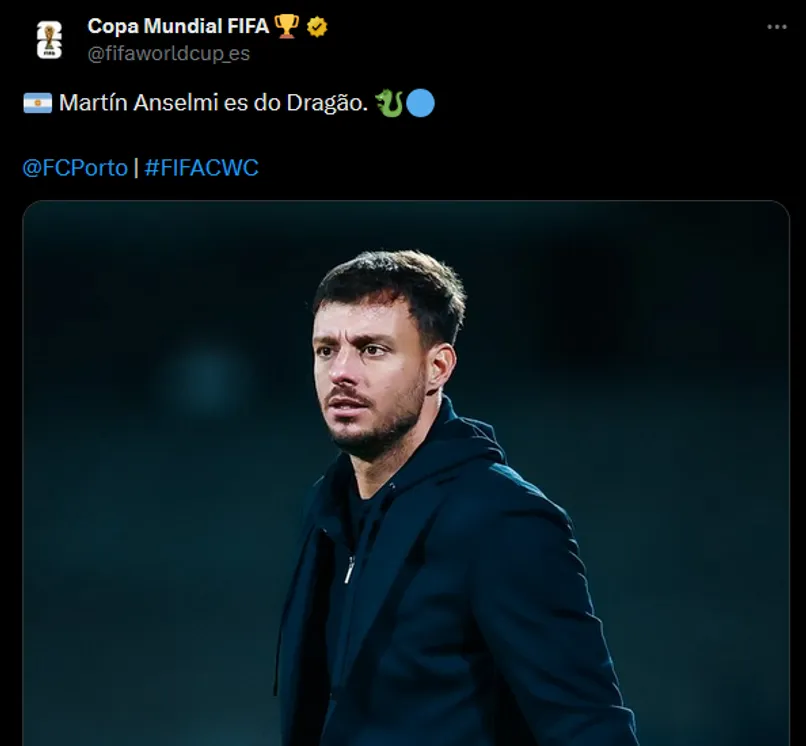“Martín Anselmi es do Dragão (del dragón)”, escribió la cuenta oficial de la Copa del Mundo FIFA. Como era de esperarse, cientos de fanáticos cementeros dejaron comentarios no muy agradables para el estratega de 39 años, quien este lunes encabezó el primer entrenamiento al frente de su nuevo equipo.