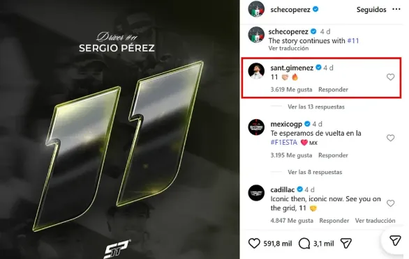 Y es que al momento del anuncio del Checo de su vuelta a la máxima categoría del automovilismo, Santiago Giménez reaccionó con un apretón de manos con el dorsal 11 en medio, lo que se entendió como un guiño del futbolista al piloto para un reencuentro en la ciudad de Monza, a solo 40 minutos de la ciudad Milan.