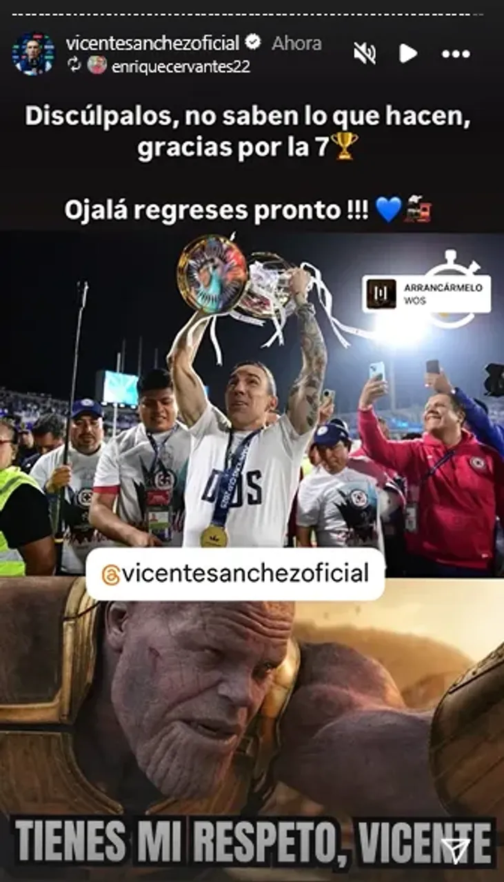 “¡Muchas gracias, Vicente! CF Cruz Azul informa que, de mutuo acuerdo, hoy ha concluido la gestión del profesor Vicente Sánchez como responsable de nuestro primer equipo varonil. Su trabajo y del cuerpo técnico institucional fue fundamental para la obtención de la séptima Copa de Campeones de la Concacaf en la historia del Club”, indica parte del mensaje.