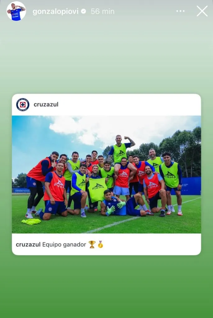 Adrián Esparza Oteo afirmó que fue un golpe duro para Gonzalo Piovi, sobre todo porque ya se había despedido de todos en La Noria. Sin embargo, el futbolista publicó una imagen del último entrenamiento previo al duelo contra Toluca. En la publicación se lo vio feliz y concentrado de cara a los próximos compromisos que tiene como futbolista cementero.
