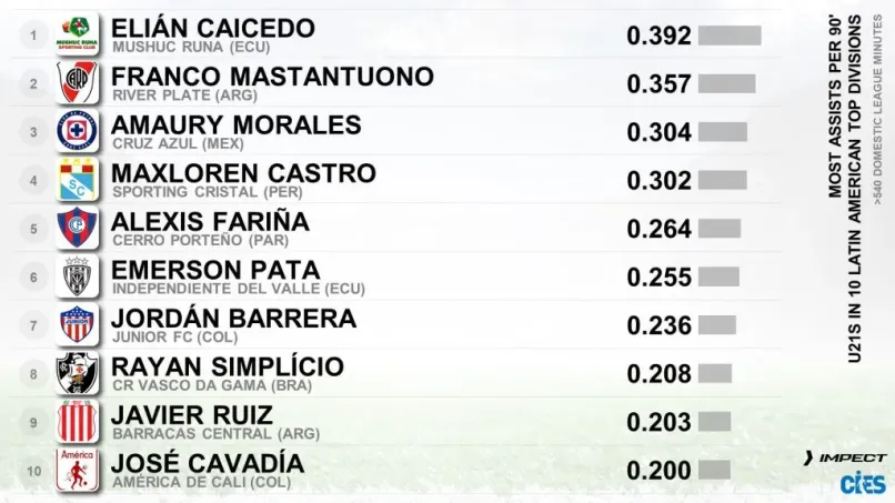 Según un ranking elaborado por la conocida agencia CIES Football, Amaury Morales es junto a Franco Mastantuono uno de los mejores futbolistas Sub-21 en cuanto a mayor cantidad de asistencias por 90 minutos jugados. Esto se da entre las diez principales ligas de América, quedando en el tercer lugar.