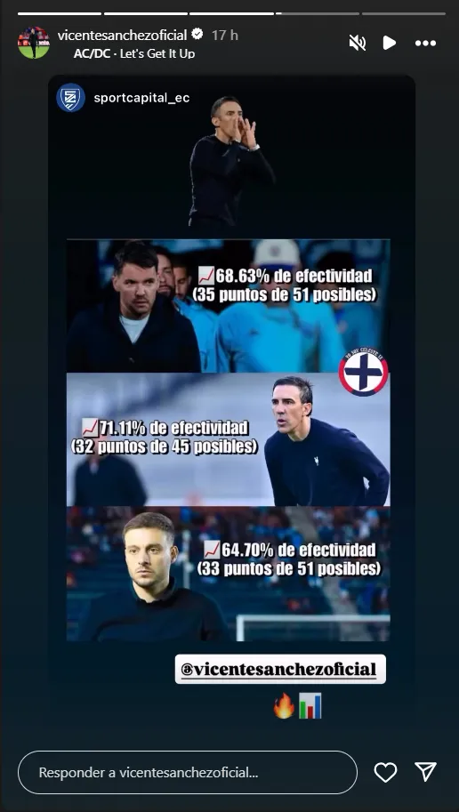 El uruguayo, protagonista de una etapa breve pero brillante, reapareció en Instagram con un mensaje silencioso y directo, casi quirúrgico… pero cargado de significado. A través de una historia, compartió la imagen publicada por SportCapital (su agencia de representación) en la que se contrastaban los números recientes de los DT de Cruz Azul desde 2024: Martín Anselmi y Larcamón.