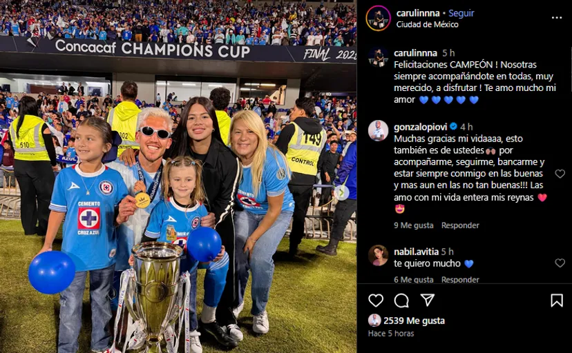 De festejo luego de superar a Vancouver Whitecaps, su esposa le dedicó unas bonitas palabras a través de Instagram. “Felicitaciones campeón” Nosotras (con sus hijas) siempre acompañándote en todas, muy merecido, a disfrutar! Te amo mucho mi amor”, expresó para agregar emojis de corazones azules.