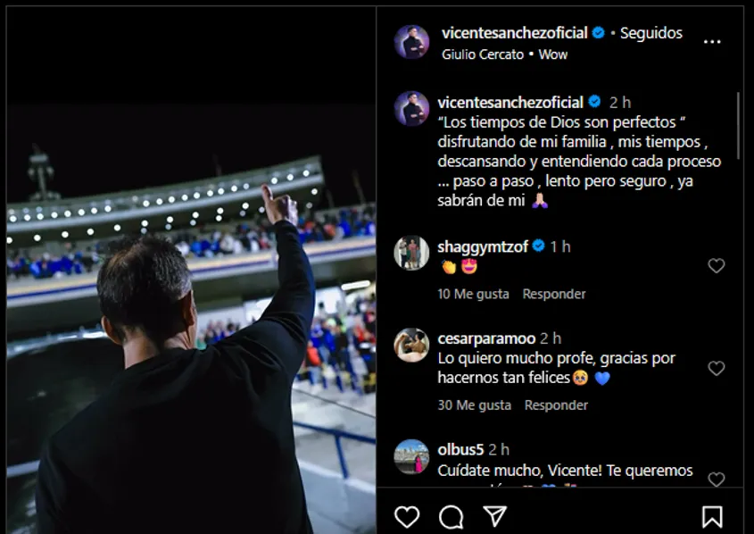 “Los tiempos de Dios son perfectos, disfrutando de mi familia , mis tiempos , descansando y entendiendo cada proceso … paso a paso , lento pero seguro , ya sabrán de mi”, escribió el sudamericano en las últimas horas, todavía con la reciente salida desde Vamos Azul con su absoluto silencio.
