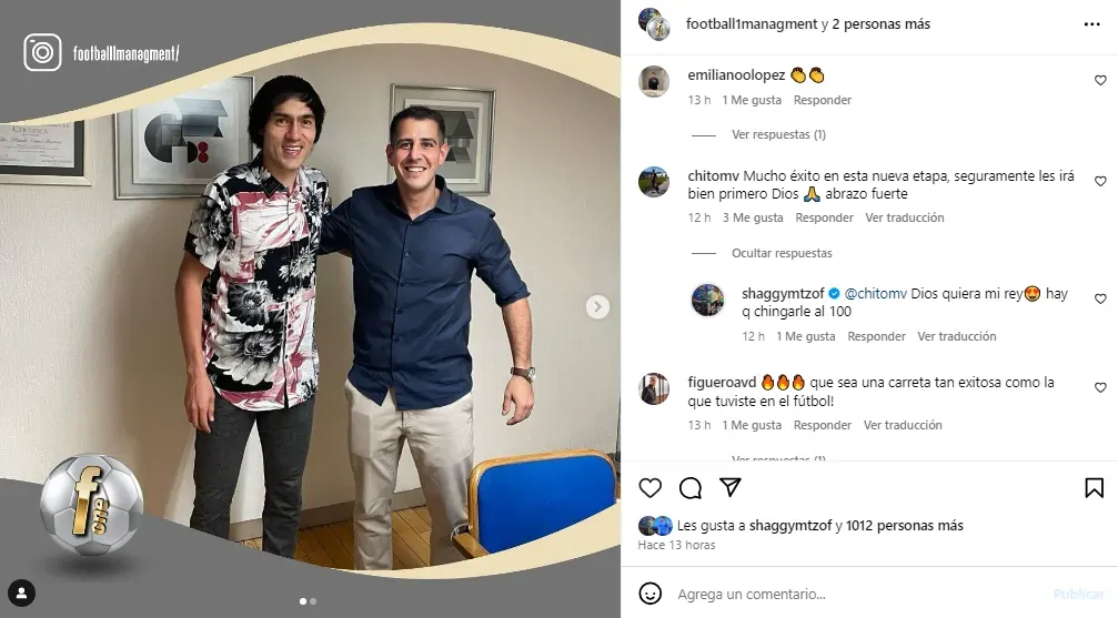 “Bienvenidos a la cuenta de Instagram Football One. Empresa dedicada a la representación e intermediación de futbolistas y entrenadores”, es el mensaje que se puede leer en la nueva cuenta de Instagram, en la que la dupla subirá todas las novedades de su andar por el futbol.