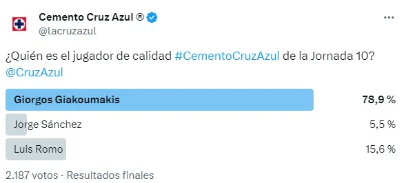 Hay que destacar que la decisión para otorgar el reconocimiento estuvo a votación, por parte de Cruz Azul. Así, fue la afición la que eligió al griego por encima de otros dos jugadores que también fueron protagonistas en el triunfo celeste ante los Tuzos.