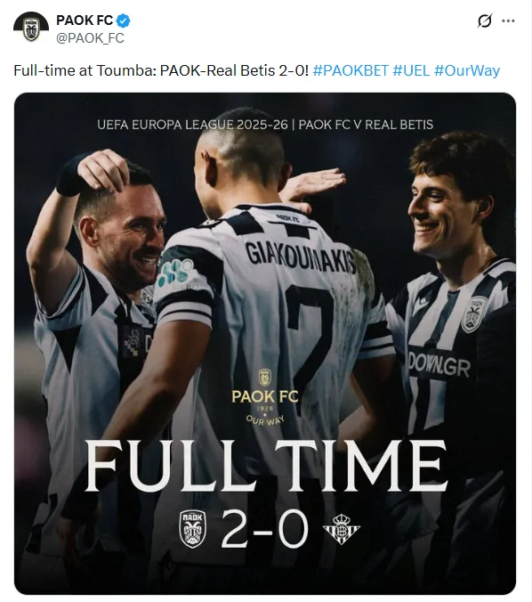El momento más esperado llegó en los minutos finales. Con el marcador a favor 1-0 y tras una jugada en la que él mismo asistió, el árbitro señaló penal a favor del PAOK. Sin dudarlo, Giakoumakis se encargó de ejecutar la falta: abrió el pie, colocó el balón con precisión al lado izquierdo del portero Pau López y selló el 2-0 definitivo. Una demostración de calma, técnica y liderazgo que reafirma su estatus en Europa.
