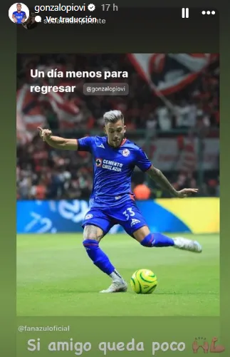 Por si fuera poco, la ilusión por ver a Gonzalo Piovi en el cuadro de Martín Anselmi en la Liguilla fue alentada por el propio zaguero argentino. Y es que, en la previa del duelo ante Pumas, el central mandó un mensaje esperanzador desde su cuenta de Instagram.