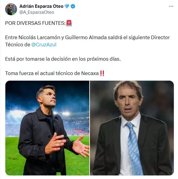 En medio de este contexto, Adrián Esparza Oteo reveló que Cruz Azul tendría como principal opción a Nicolás Larcamón. El argentino habría tomado fuerza en las últimas horas, aunque la cúpula directiva del cuadro cementero todavía no tomó una decisión final. Todo el tema del próximo entrenador tendrá mucha más claridad una vez que finalice el partido contra Vancouver Whitecaps.