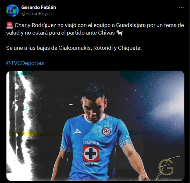 Charly Rodríguez será baja ante Chivas de Guadalajara