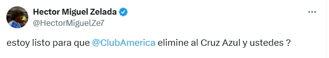 En ese marco, Héctor Miguel Zelada, campeón del mundo en México 86 y leyenda del arco americanista, encendió la previa del primer partido con un mensaje provocador dirigido a los fanáticos celestes. A través de su cuenta de X, escribió: “Estoy listo para que América elimine a Cruz Azul, ¿y ustedes?”.