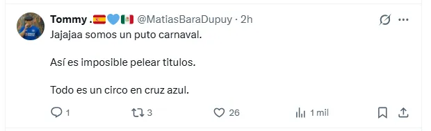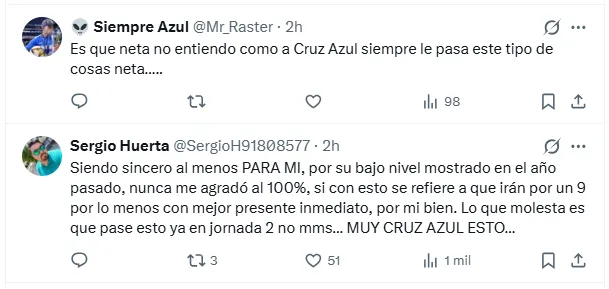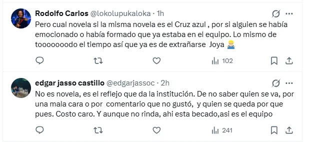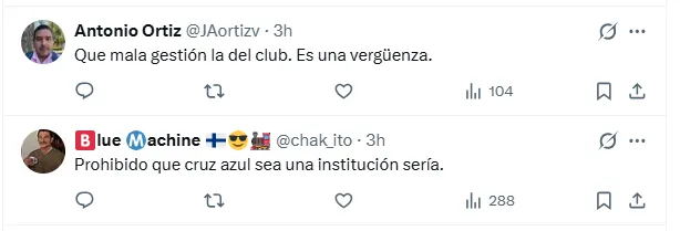 Otros hinchas apuntaron directamente contra la gestión administrativa, señalando que el caso Borja es solo un síntoma más de un problema estructural. “Cruz Azul es el único equipo que tiene más competencia en su directiva que en la cancha”, escribió un aficionado, mientras otro sentenció: “Prohibido que Cruz Azul sea una institución seria”.