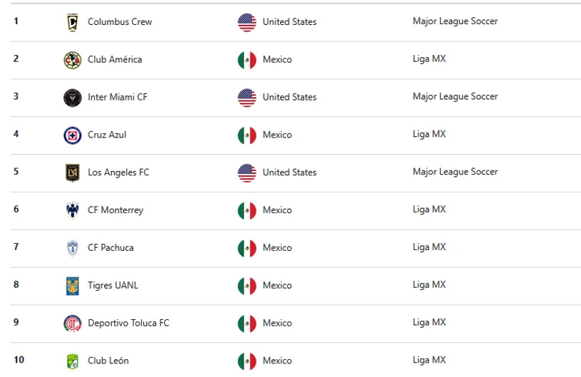 Solo aparece por debajo de Columbus Crew, las mencionadas Águilas y el Inter Miami de Lionel Messi, quien consiguió su mejor posición histórica al quedar tercero. De todas maneras, si Cruz Azul avanza en esta Concachampions probablemente sume puntos que le permitan con esta suba.