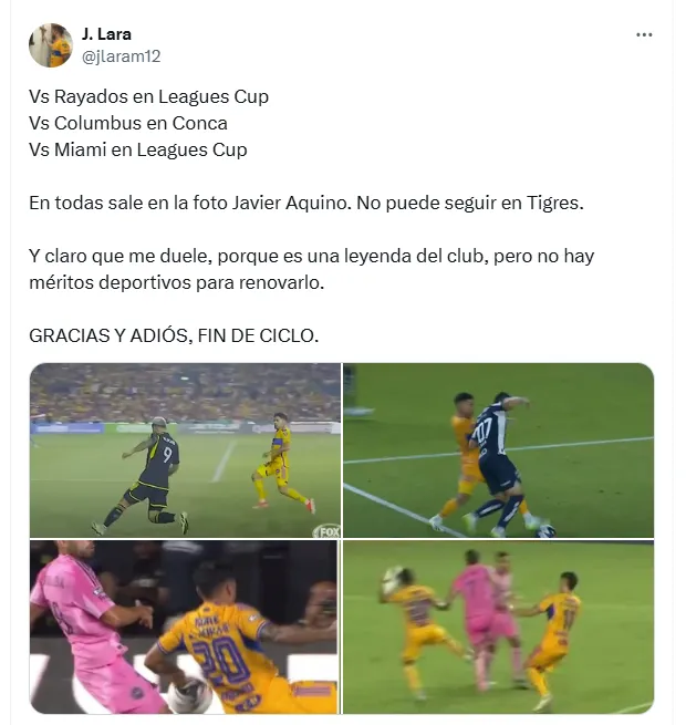 Más allá del respaldo de su DT y compañero, Javier Aquino se convirtió en el gran villano de la afición felina en las redes sociales. Mensajes críticos y memes inundaron X (ex Twitter) principalmente, señalando al ex Cruz Azul como responsable directo de la eliminación del torneo que reúne a la Liga MX y la MLS.