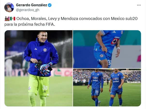La gran noticia para las fuerzas básicas de La Máquina es que fueron cuatro de sus jóvenes promesas los convocados a la Selección Mexicana Sub-20 de cara a la última Fecha FIFA previa al Mundial en Chile. Junto a Mendoza, se unen Emanuel Ochoa, Amaury Morales y Mateo Levy para los preparativos finales antes del Mundial.