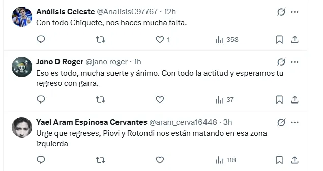 Incluso, algunos comentarios mezclaron emoción con exigencia táctica: “URGE TU REGRESO, PERO SIN ARRIESGAR TU INTEGRIDAD FÍSICA… LARCAMÓN debe ponerte de TITULAR”, dejando claro el impacto que Chiquete tiene en la planificación del equipo.