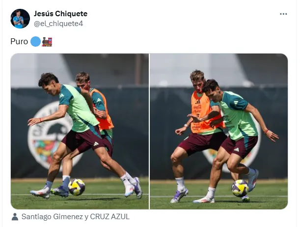 Precisamente, el actual delantero del AC Milan y el Chiquete fueron los protagonistas de una imagen que encendió de emoción a toda la afición azul. Durante uno de los entrenamientos del Tri en tierras estadounidenses, ambos compartieron trabajos y el actual defensa del equipo de Larcamón publicó en sus redes sociales la postal que los retrató juntos, generando una fuerte repercusión.