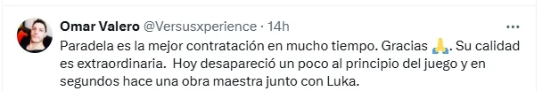 Las comparaciones con jugadores históricos del club tampoco faltaron. Uno lo calificó como “el fichaje del torneo”, mientras otro afirmó con contundencia: “Un crack, nada más que decir”. Incluso hubo quienes se animaron a ponerlo en la misma línea de glorias de pasado, asegurando que “Paradela es el 10 que no teníamos desde el Matute Morales, es un crack”.