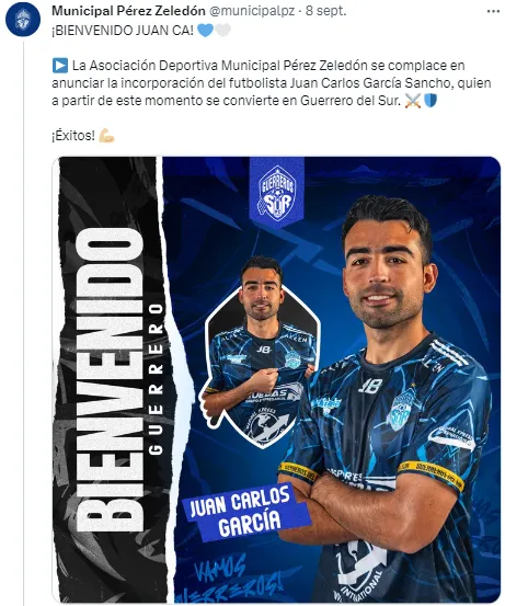 A través de sus redes sociales, el club Municipal Pérez Zeledón anunció el fichaje de Juan Carlos García Sancho para la temporada 2023/2024. El surgido en La Máquina se incorporó en condición de agente libre.