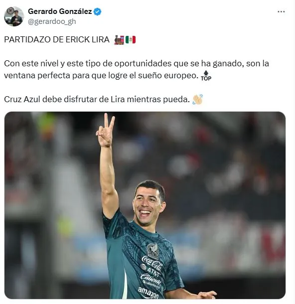 Más allá de que Lira tuvo un proceso bastante largo con la Sub-23, nunca había tenido la oportunidad de ser protagonista con el primer equipo de México. Tras su increíble actuación frente a Canadá, Gerardo González le lanzó a Cruz Azul una advertencia: “Con este nivel y este tipo de oportunidades que se ha ganado, son la ventana perfecta para que logre el sueño europeo. Cruz Azul debe disfrutar de Lira mientras pueda”.