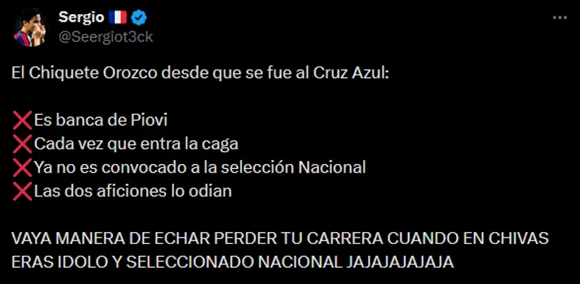 Ante esto los fanáticos de Chivas de Guadalajara no se la dejaron pasar, sin ánimos de perder tiempo para burlarse de Chiquete. Es que su salida del Rebaño Sagrado estuvo envuelta en polémica, ya que el zaguero de 22 años hizo la suficiente fuerza para que la directiva de Amaury Vergara acepte venderlo.
