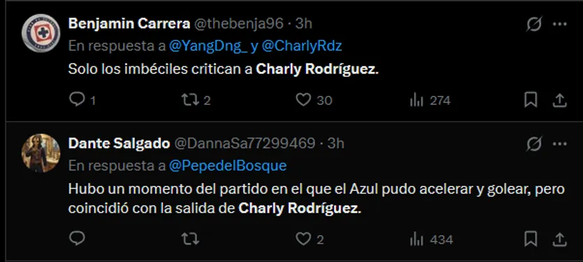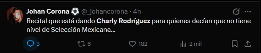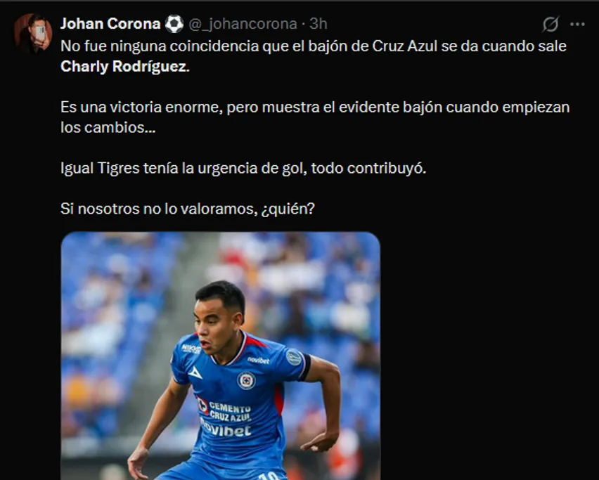 En las plataformas digitales, el nombre de Charly se volvió tendencia rápidamente, superando incluso la euforia por el debut goleador de Nico Ibáñez. Muchos usuarios coincidieron en que el volante mexicano merece regresar a la titularidad indiscutible en la Selección Nacional tras este nivel mostrado. Para la hinchada, su visión de juego fue lo que permitió que Cruz Azul se viera infinitamente superior a Tigres.