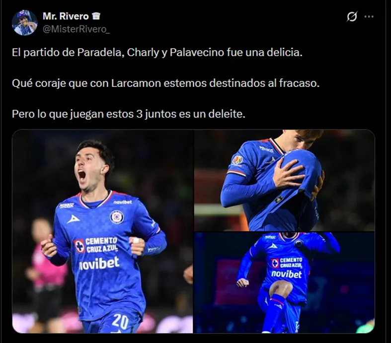 “El partido de Paradela, Charly y Palavecino fue una delicia. Qué coraje que con Larcamón estemos destinados al fracaso. Pero lo que juegan estos 3 juntos es un deleite”, dijo otro aficionado con cierta ilusión pero también con una premisa dura, creyendo que el entrenador argentino no cumplirá con el título.