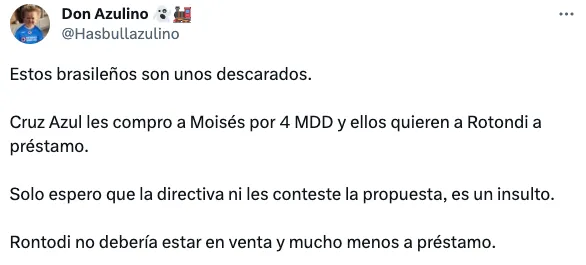 Todo esto generó el rechazo de la afición cementera en las redes sociales. Y es que el argentino es uno de los más destacados de Cruz Azul y su salida sería un duro golpe para el equipo.