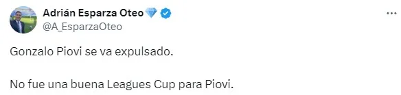 Está claro que la eliminación de Cruz Azul generó que el pueblo celeste muestre todo su enojo al sentirse decepcionados. Sin embargo, Piovi cometió un error muy infantil que le valió la expulsión contra los Cañoneros. Si bien la segunda amarilla vino a través de una falta para cortar un ataque rival importante, la primera se produjo por una discusión con el árbitro.