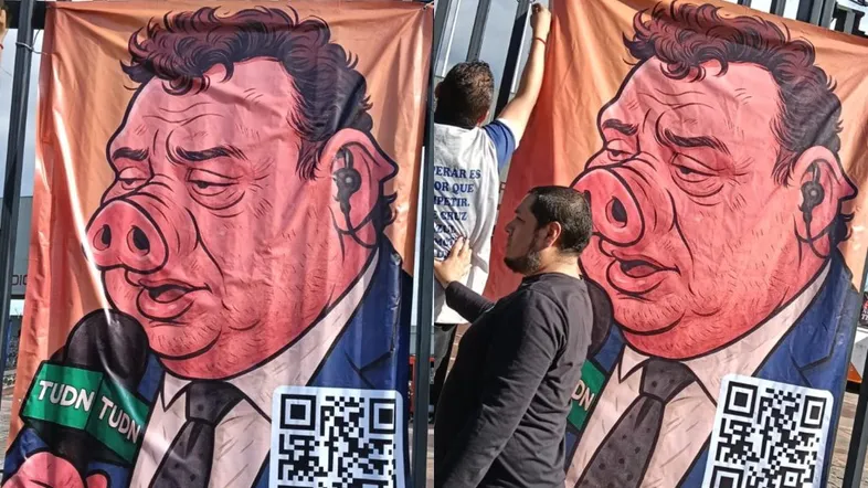 Todo esto y sumado a varios mensajes lanzados a través de X fueron la gota que rebalsó el vaso entre los fanáticos, quienes estallaron en la previa del duelo ante Santos Laguna. Es que un sector de la Sangre Azul montó una bandera en las inmediaciones del estadio, caricaturizando al reportero como si fuera un cerdo, lo que se hizo viral en redes sociales.