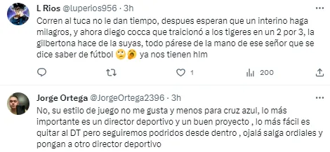 Los Tweets de algunos aficionados de Cruz Azul sobre la posibilidad de Diego Cocca