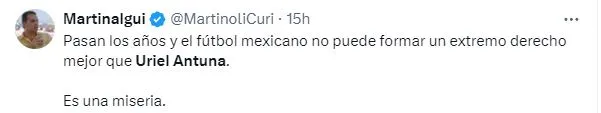 La realidad es que el actual jugador de ‘La Máquina’ mostró un buen nivel frente a Panamá, aunque en redes sociales lo atacaron injustamente. Sin dudas es un caso bastante particular debido a que Antuna divide realmente al aficionado mexicano. De todas formas, Uriel tendrá la oportunidad de volver a mostrar su jerarquía en la final frente a Estados Unidos.