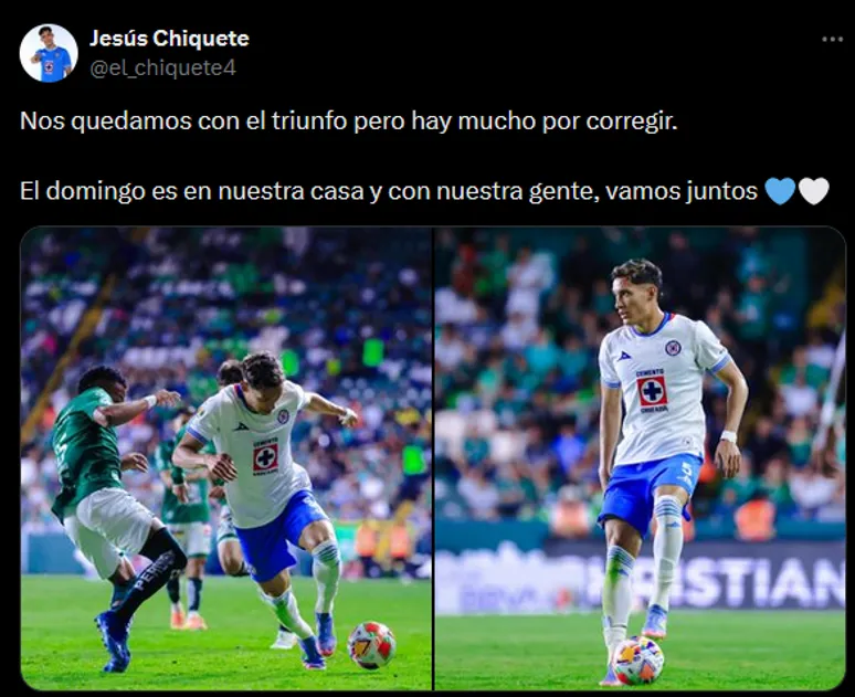 Esto rápidamente fue entendido por Chiquete, quien en la noche del viernes lanzó un contundente mensaje al respecto en sus redes sociales: “Nos quedamos con el triunfo pero hay mucho por corregir. El domingo es en nuestra casa y con nuestra gente, vamos juntos”.