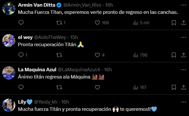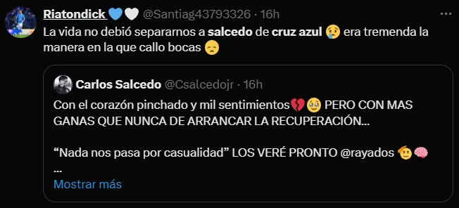 A través de la red social X, usuarios identificados con Cruz Azul le enviaron afecto a Carlos Salcedo en respuesta a su última publicación, y muchos de ellos recordaron los buenos momentos vividos en el Ciudad de los Deportes.