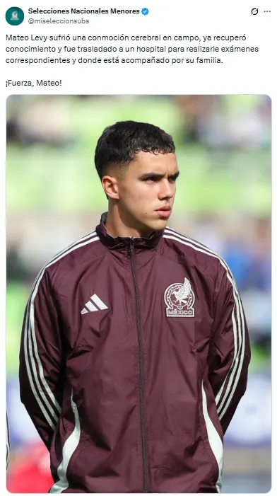 Siguiendo las primeras informaciones que dieron a conocer desde las redes de las Selecciones Menores de México, Levy sufrió una conmoción cerebral en el campo, aunque recuperó el conocimiento poco después y fue trasladado a un hospital para realizarle estudios complementarios. Allí añadieron que se encuentra acompañado por su familia y bajo observación médica.