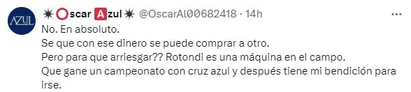 Más allá de la división que genera en la afición desde la final, Rotondi ha mostrado un gran rendimiento desde su llegada en 2023. Por lo tanto, el pueblo cementero se ha mostrado bastante en contra de que Cruz Azul lo deje ir en este mercado. Sobre todo porque no hay un reemplazante directo y todavía no ha aparecido un extranjero que sea un bombazo para reforzar la plantilla.