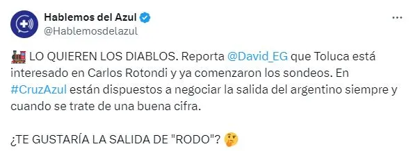 Recientemente Rodo Rotondi volvió a estar en el foco de la escena al revelarse que Toluca y Monterrey pretenden ficharlo en este mercado de pases. El futbolista de 27 años demostró su valía en el futbol mexicano y es por eso que despertó un gran interés. Debido a que Cruz Azul no ve con malos ojos librerar una plaza de extranjero, se sentará a escuchar ofertas por el argentino.