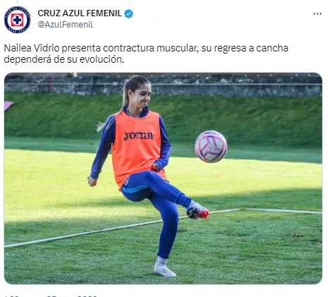 Cruz Azul confirmó que Nailea Vidrio sufrió una contractura muscular por lo que volvió a quedar fuera de la convocatoria para este sábado, descartando así, además, que su ausencia fuera debido a una sanción tras estar involucrada en el altercado que protagonizó el hijo de Jesús Corona.