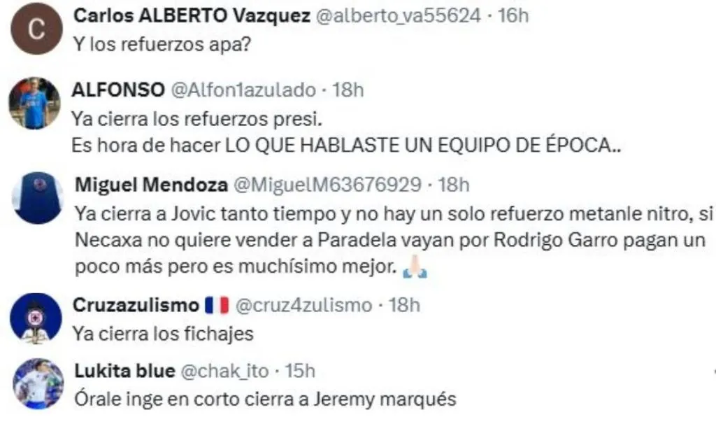 Ante este contexto, la afición le ha pedido con mucha insistencia a Víctor Velázquez que concrete refuerzos para la siguiente temporada. Está claro que Cruz Azul tiene una de las mejores plantillas de la Liga MX, pero la intención es seguir mejorándola. Además, quedó demostrado que las incorporaciones necesitan un tiempo de adaptación al tratarse de un club demasiado grande.