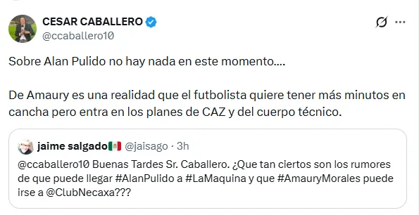 En ese sentido, el reportero César Caballero fue claro al señalar que el futbolista desea tener más participación, aunque sigue entrando en los planes tanto del club como del cuerpo técnico.