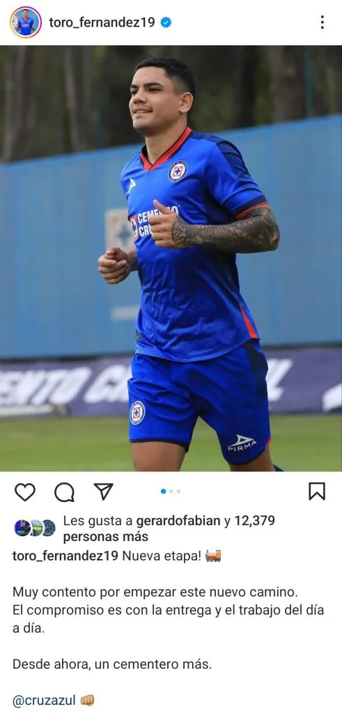 Instagram: El primer posteo del Toro Fernández como jugador de Cruz Azul