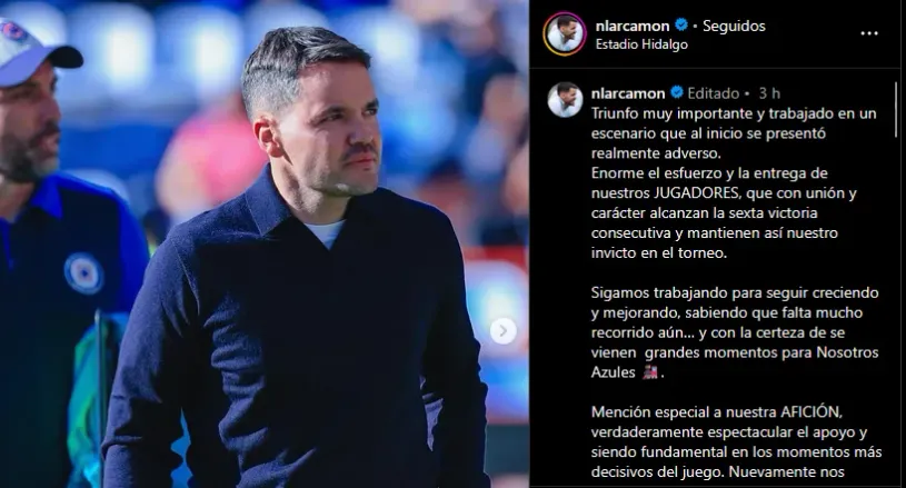 Por otro lado, el ex entrenador de Necaxa agregó: “Sigamos trabajando para seguir creciendo y mejorando, sabiendo que falta mucho recorrido aún… y con la certeza de se vienen grandes momentos para Nosotros Azules“, expresó a modo de promesa en la segunda mitad del mensaje.