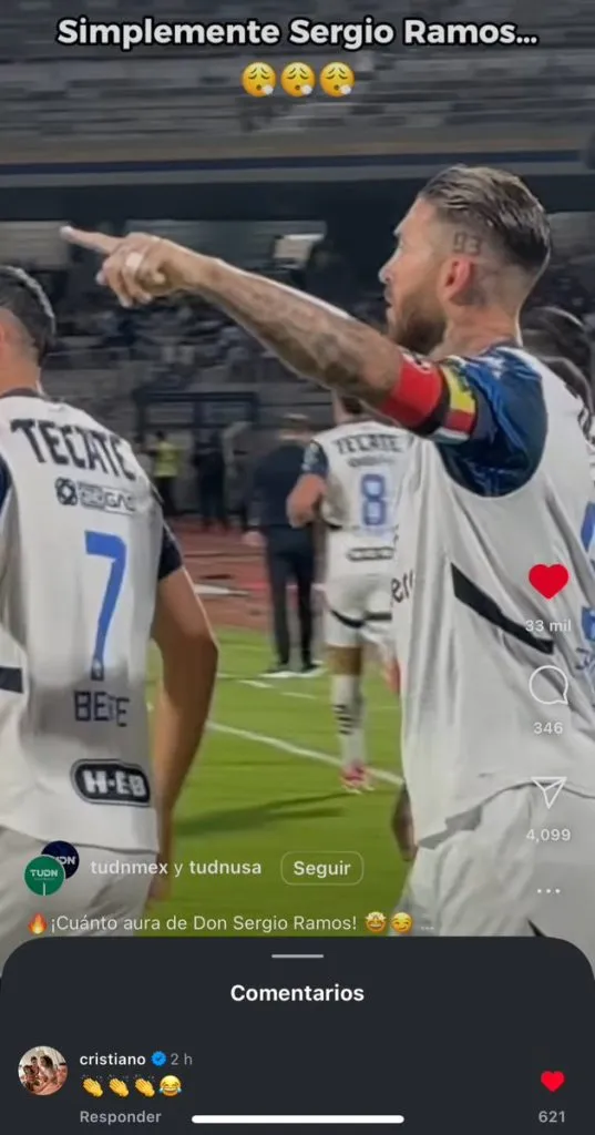 Uno de los mejores jugadores de la historia comentó en una publicación de TUDN unos emoticones de aplausos, aunque también riéndose del intento de Ramos en replicar su famoso festejo del ‘Siuuu’. Ante esto, la afición de Rayados no pudo ocultar su emoción y replicó la sorpresiva situación.