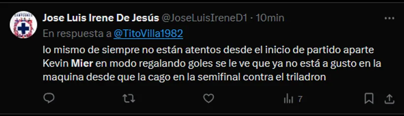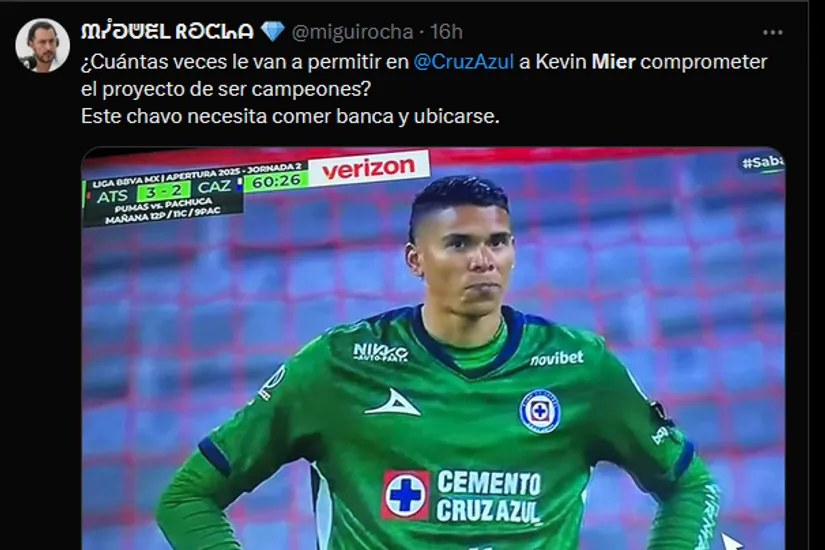 Otro que también salió al paso de los errores de Mier fue Carlos Hermosillo. El ex jugador de los cementeros utilizó sus redes sociales para hacer un diagnóstico del encuentro: “Error grosero de Kevin Mier y Eduardo Aguirre marcó el primero de Atlas… La falla del colombiano ya costó un gol esta noche a nuestro Cruz Azul.”, comentó.