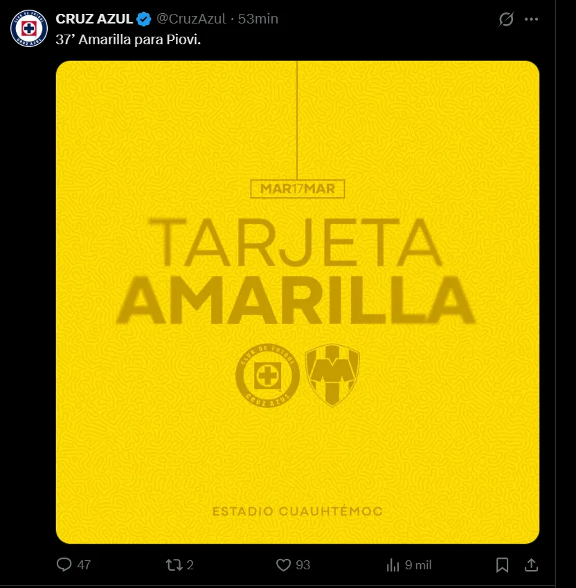 La Máquina es un equipo que juega con la máxima intensidad durante cada partido y durante los 90 minutos de juego, por lo que varios de sus futbolistas son advertidos recurrentemente y en esta ocasión fue el turno de Gonzalo Piovi.