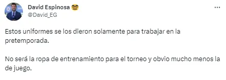 No obstante, de acuerdo con información del periodista de Fox Sports, David Esposa, estos uniformes solo fueron entregados por Pirma para que el equipo cementero trabaje en la pretemporada, ya que la indumentaria oficial, tanto de entrenamiento como de juego serán presentados posteriormente.